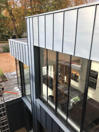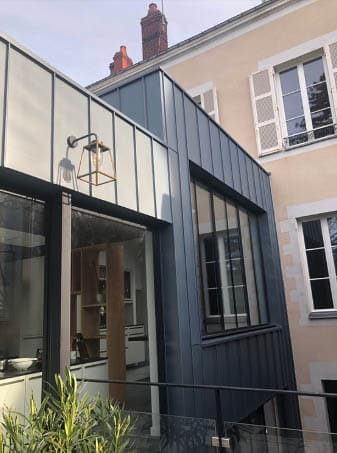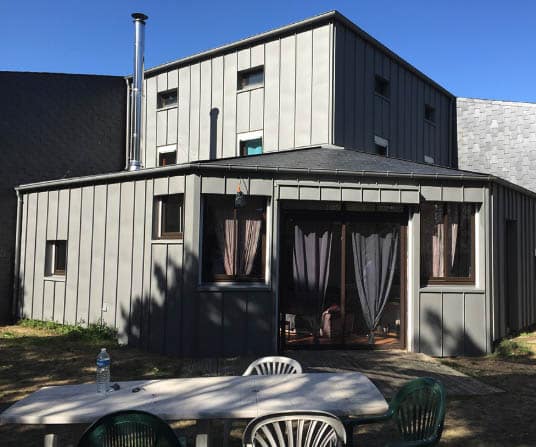 Avec ou sans isolation, vous pouvez habiller vos façades en zinc, en trame régulière et de différentes couleurs (bleu, noir, rouge, vert, gris,…).